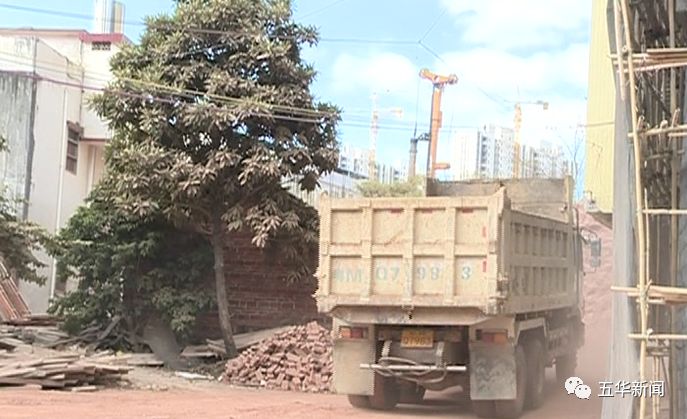 接到爆料后,记者第一时间来到现场对问题进行曝光,可以看到泥头车经过马路时就会扬起一阵灰尘。