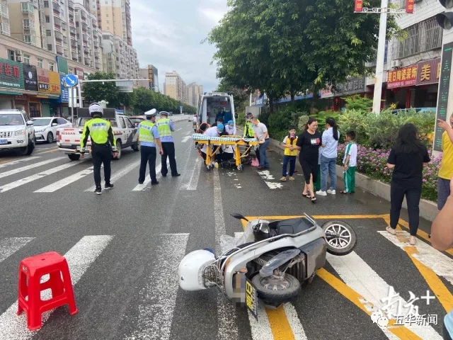 5月21日11时45分,五华县公安局交警大队铁骑队员巡逻至华强学校门口时,听到一名学生家长反映:前方发生一起交通事故,一名女士受伤倒地,面部出血。